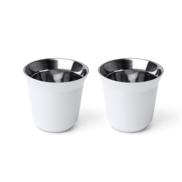 Desde €12.20Set de 2 vasos para café elaborados en acero inoxidable 304 reciclado, con cuerpo en acabado mate y efecto espejo interior. Con capacidad para 80 ml cada una.