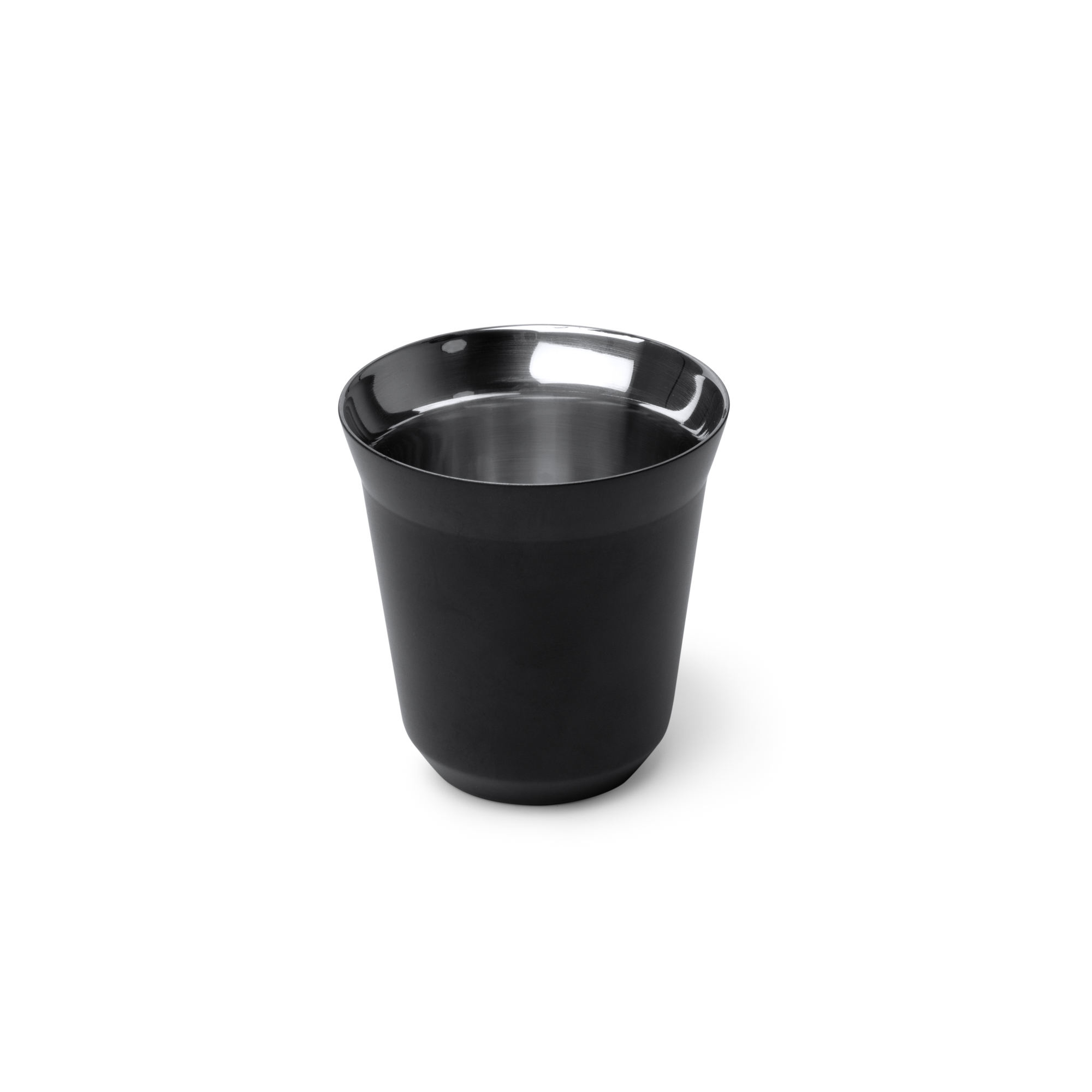 Vaso para café elaborado en acero inoxidable 304 reciclado con cuerpo en acabado mate en el exterior y efecto espejo en el interior. Cuenta con una capacidad para 160 ml.