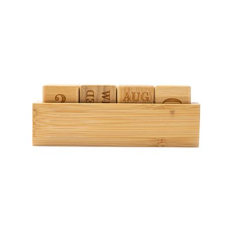 Calendario perpetuo de sobremesa realizado en bambú, formado por soporte y cuatro bloques grabados. Composición: BambúObservaciones: Presentación en caja eco.