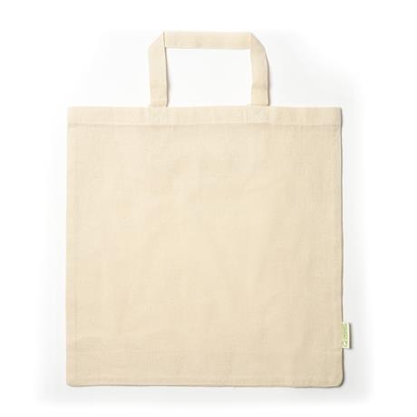 Bolsa 100% algodón orgánico de 120 g/m² con fuelle y asas cortas reforzadas de 35 cm.