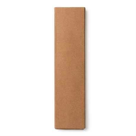Set de escritura de madera natural presentado en estuche de cartón kraft. Incluye los productos fundamentales: regla, 3 lápices, goma de borrar y un sacapuntas.